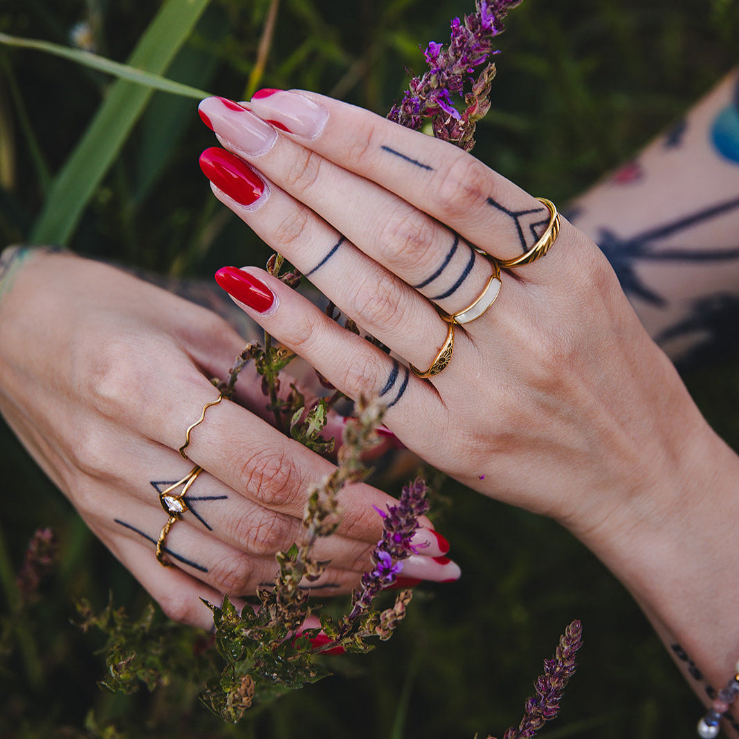 La bague ondulée dorée Naïa fait partie de la collection Jardin Secret, une collection pensée comme une invitation à révéler ta lumière intérieure et à suivre ton propre mouvement.