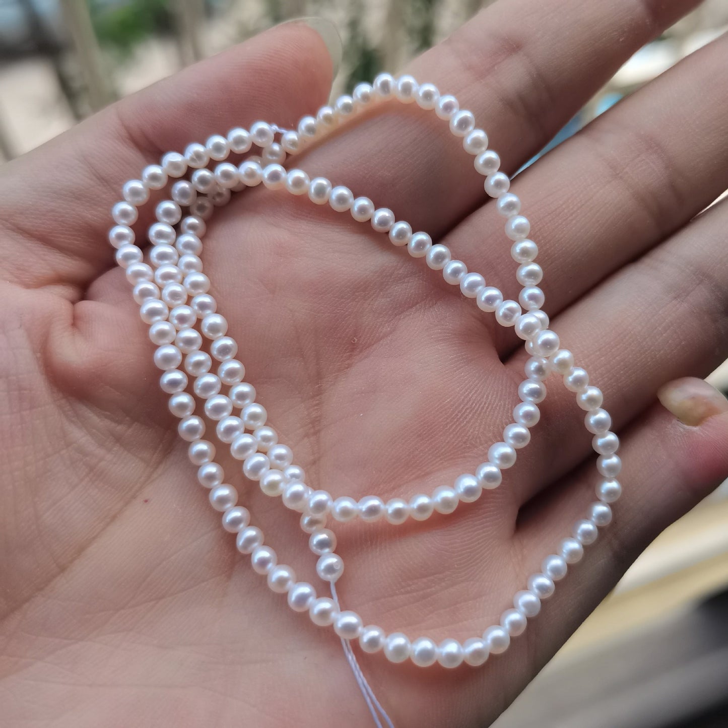 Natural freshwater pearl 3mm nearly round translucent white small pearl clavicle chain semi-finished necklace