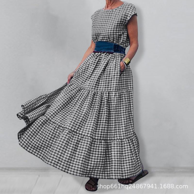 French high-waist cotton sling half-length long skirt plaid women's clothing