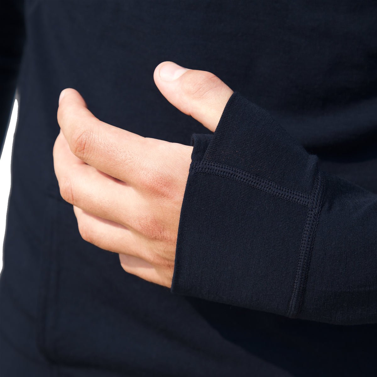 COMFORTABLE AND EASY TO CARE FOR: 85% Merino/ 15% Nylon Blend - 260g/m2 fabric weight and 18.5 micron – designed to have a snug fit, soft, lightweight, non-itch silky feel with some stretch and no itchy tags. Durable, quick drying (Hang to dry), wrinkle free and machine washable in cold water. Zipper to provide venting or to lock in warmth. Chest pocket for securing loose objects and Stomach pouch for storage or hand warmth