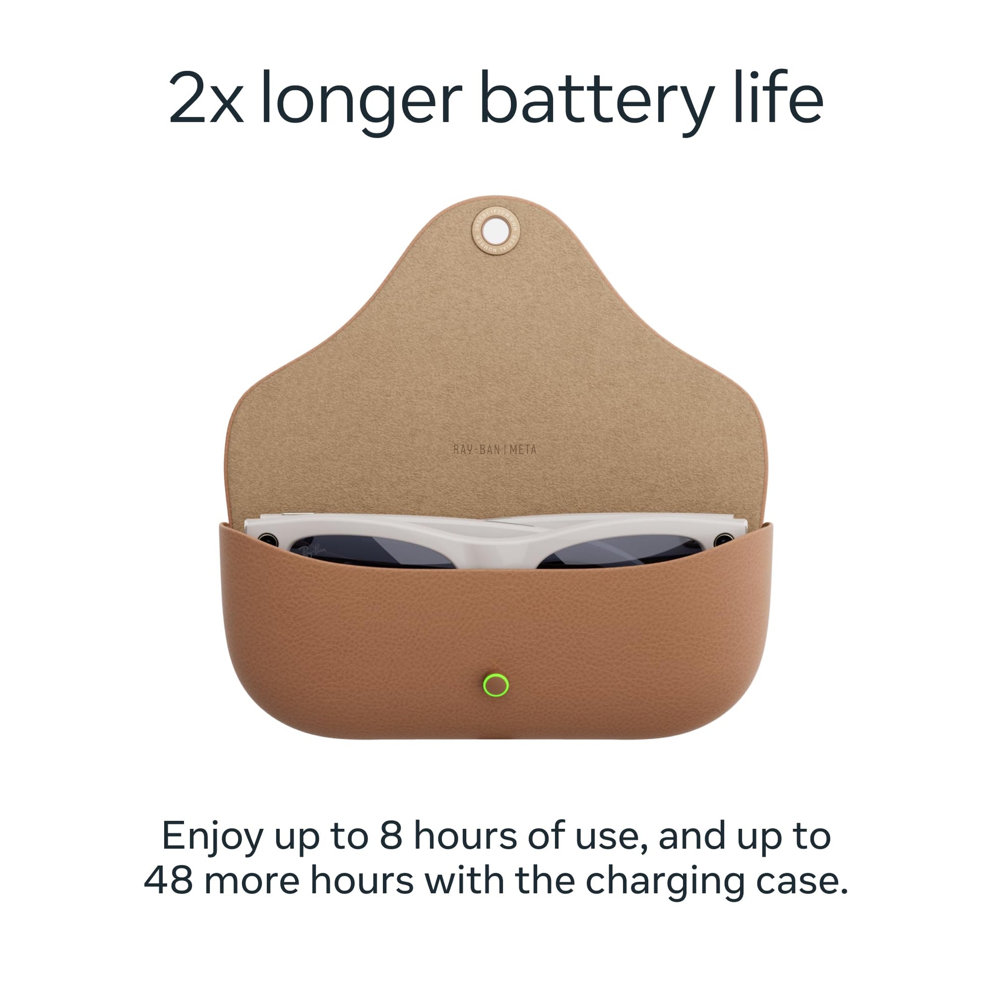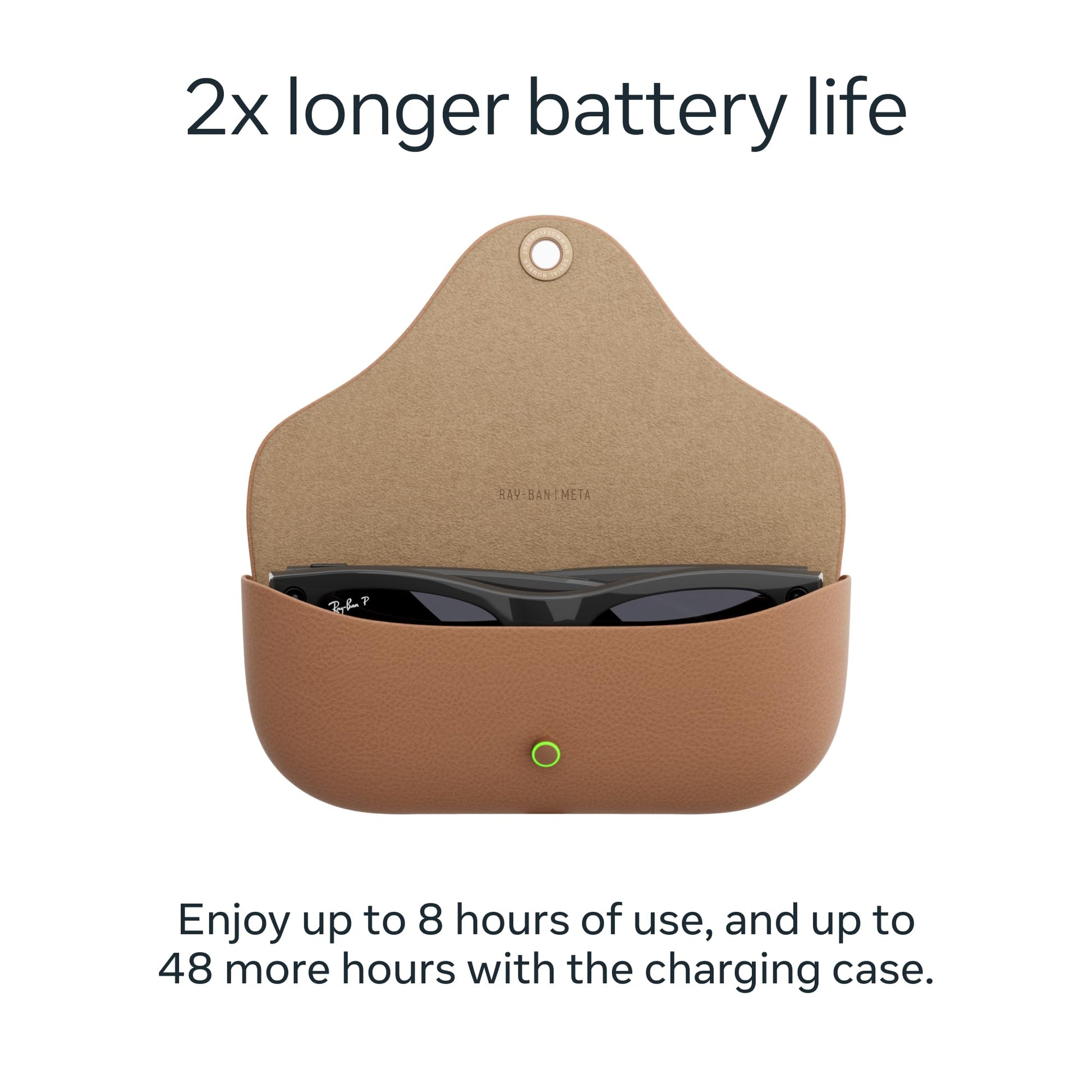 - UP TO 8 HOURS OF BATTERY LIFE - On a full charge, these smart AI glasses can last 2x longer than previous generations, up to 8 hours with moderate use. Plus, each pair comes with a charging case that provides up to 48 hours of charging on-the-go.
