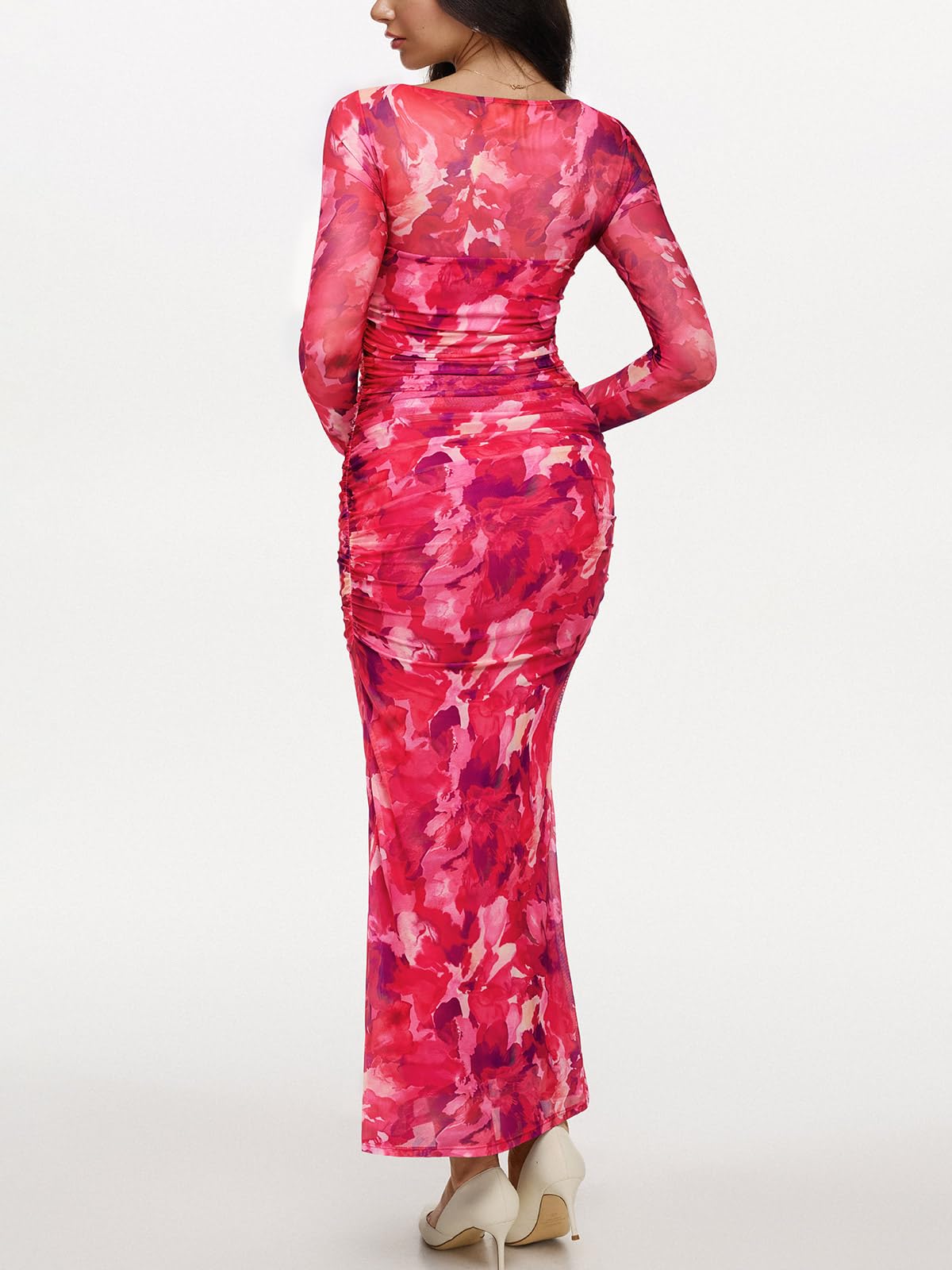 - Sexy Aesthetic: Perfect square neck maxi dress accent your sexiest part, showing some cleavage and beautiful collarbone, covered whole body with mesh, sheer sleeve and half back, side ruches at waist & thighs, adds a sense of layering and trendy casual.