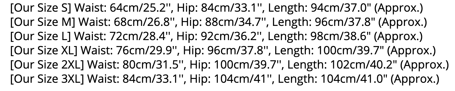 [Our Size 3XL] Waist: 84cm/33.1'', Hip: 104cm/41'', Length: 104cm/41.0" (Approx.)